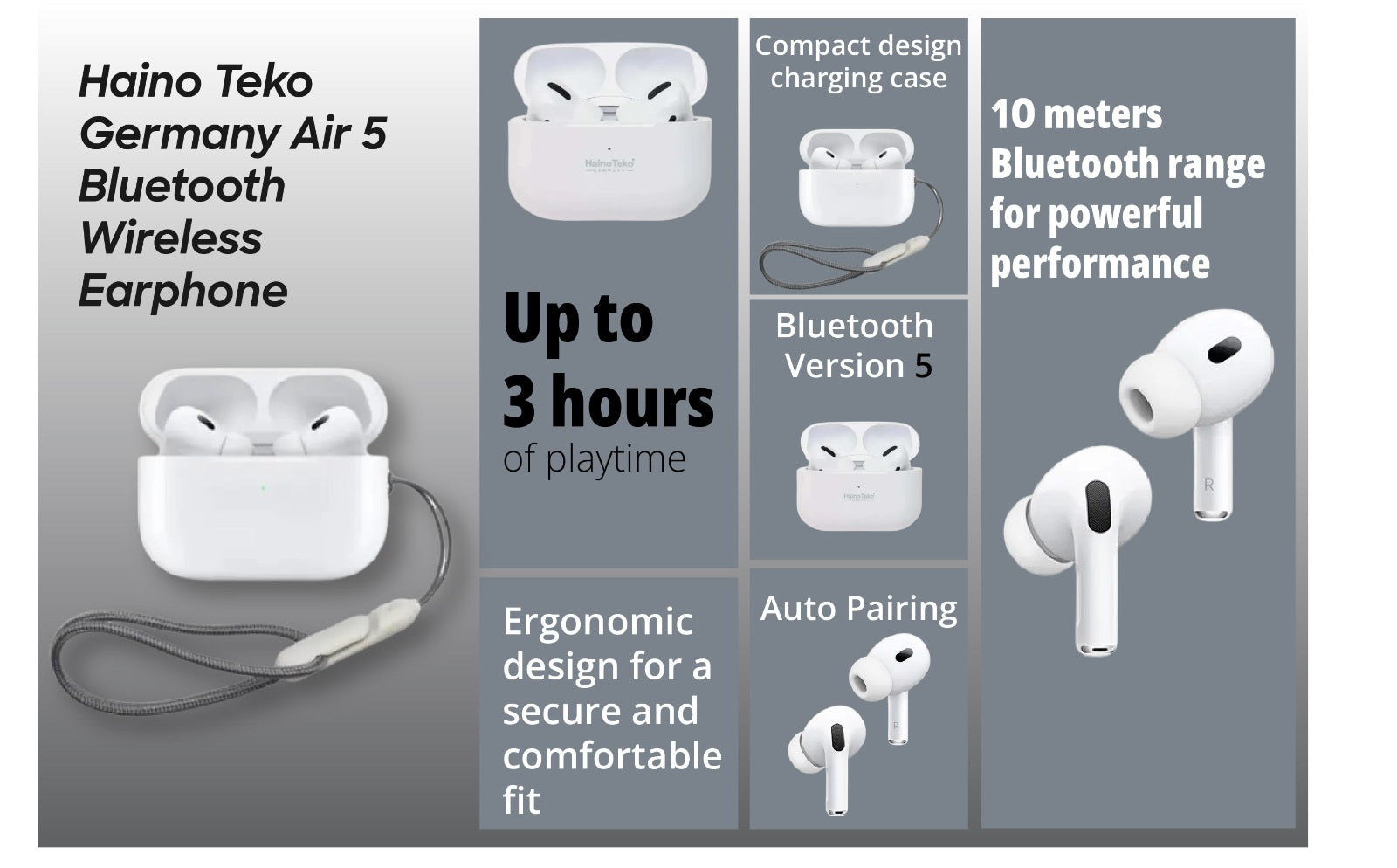 Haino Teko GERMANY Air-5 Bluetooth Earbuds – Premium Sound, Deep Bass, ENC & ANC Noise Cancellation