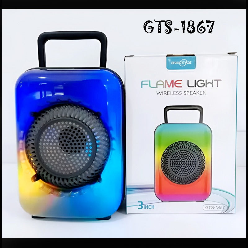 GTS-1867 Mini Portable 3-Inch Wireless Speaker – Rechargeable with Flame Lighting Effect